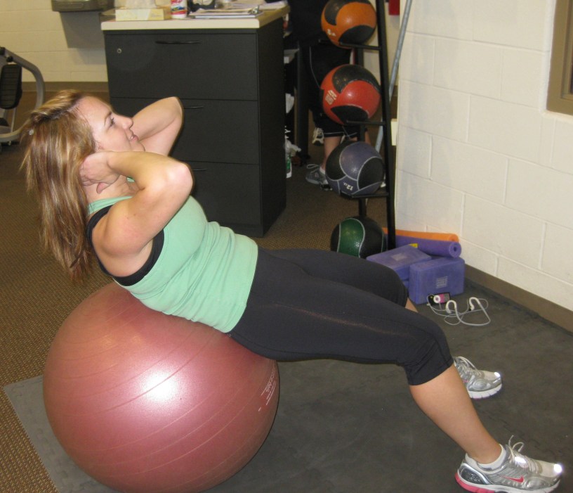 “When you lie on the ball, your legs and abs have to contract to keep you from falling off,” said Cygnarowicz. “They’re also easier on the back if you have a hard time with abs on the floor.”